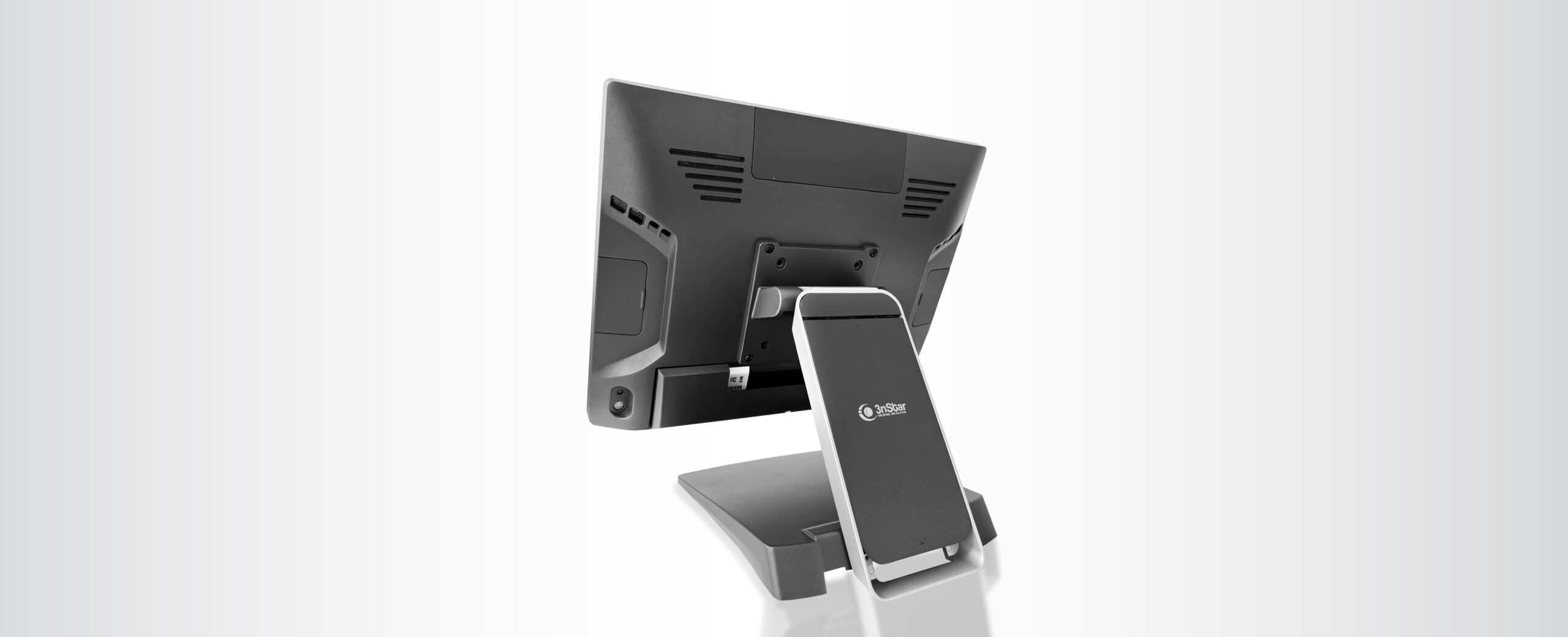 Su diseño plegable y flexible permite ajustar inclinación y ángulo de visión según la configuración del mostrador, optimizando la ergonomía del operador. Está diseñado para ensamblarse, instalarse y personalizarse según las necesidades del entorno comercial.